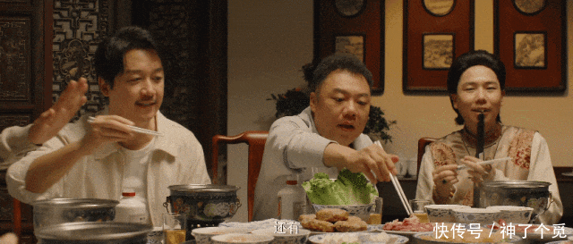 为了突显新“铁三角”自带的幽默属性,饭局上,导演还稀奇编排了一场“抢肉”的戏码。